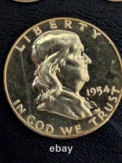 1954 proof set half quarter dime nickel cent white proof. There's just some dust specs in picture of quarter. These are immaculate high grade proofs you'll be happy.