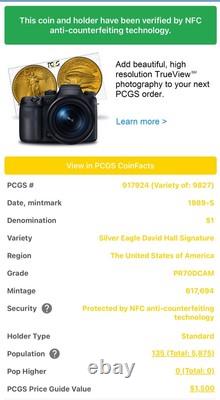 1989-s Silver Eagle David Hall Signtature Pr70 Dcam