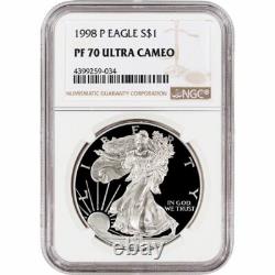 1998-P Proof American Silver Eagle One Dollar Coin NGC PF70 Ultra Cameo. In the case of typographical or computer errors in a listing, First Modern Coins will not be able to honor the sale. We use stock photos d. Ue to the large inventory we sell. We take all of our photos in house and most of Proof Coins has a dark or black reflections when there is not.