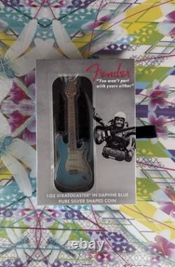 1 oz Silver Daphne Blue Fender Stratocaster Coin (2023)