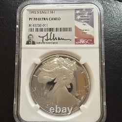 $1k Value RARE PF70 1992-S SIGNED THOMAS J URAM SILVER EAGLE ULTRA CAMEO