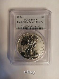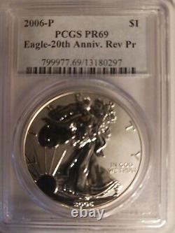 2006 P Reverse Proof Silver Eagle Pcgs Pr69 From The 20th Anniversary Set