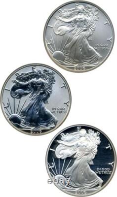 The coins are ungraded and come with US Mint certification. The set was minted in the United States by the U. Mint and features the iconic American Eagle design. The coins are composed of precious metal content, with a total of 3 oz of silver in the set. This set is a must-have for any coin collector or silver enthusiast.Al original government packaging is included.