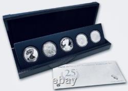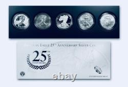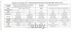 Celebrate a milestone with the 2011 American Eagle Silver 25th Anniversary 5 Coin Set. Each set includes five stunning coins, each weighing 1 oz and crafted with 0.999 fineness, embodying the purity and majesty of America's beloved symbol. The coins are presented in pristine proof quality, struck by the U. The set commemorates a quarter-century of craftsmanship, with each coin bearing the distinguished marks of the U.