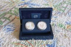 999 fine silver and are part of the U. Mint's series of American Eagles. With both proof and reverse proof striking types, these coins are perfect for collectors looking for a high-quality piece of American numismatic history. Original Government Packaging (OGP) including a display box and COA are included with these coins which will arrive in capsules.