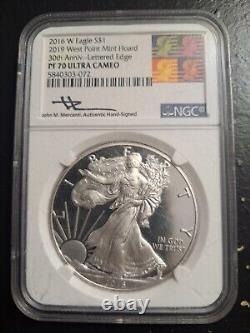 2016 W Proof Silver Eagle Ngc Pf70 Mercanti Signed 2019 West Point Mint Hoard