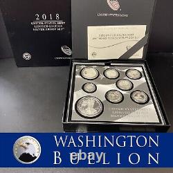 This is a 2018-S US Limited Edition Silver Proof Set that includes 8 coins in an original box with a Certificate of Authenticity (COA). The coins are uncirculated and made of silver. The set was minted in San Francisco and features proof strike type. It is a great addition to any collection of US coins and perfect for those who appreciate limited edition items.