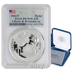 The coins you receive will be very similar. Presenting a 2024-P 1oz Silver Liberty and Britannia Medal graded PR70DCAM First Day of Issue by PCGS. The Silver Medal contains 1oz of. It comes with the original U. For the first time, the United States Mint and the British Royal Mint joined forces to create this stunning design: Lady Liberty, the iconic design of the United States, and Britannia, the representation of Great Britain.