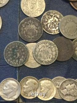 Such as a First Design of US Nickel, a Shield Nickel (partial or full date) or the First design of US Penny, a Large Cent. One 1 Kennedy Half Dollar from the 1970's to 1990's, a unique US half dollar denomination, despite normal mintage numbers, rarely seen in circulation.