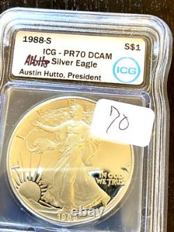 ICG 1988S PR70 DCAM American Silver Eagle Austin Hutto Signed INCREDIBLE