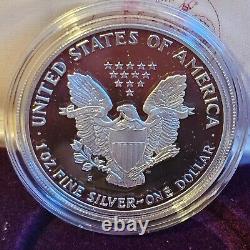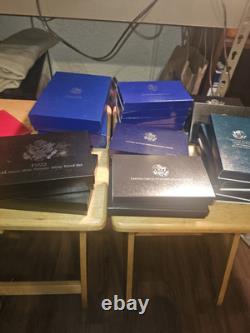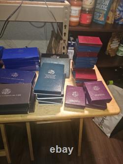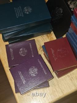 6 - 1984 US mint silver proof set. 3 - 1989 US Congressional Silver Dollar proof set. 4 - 1990 US centennial Eisenhower silver dollar. 4 - 1986 US liberty coin.